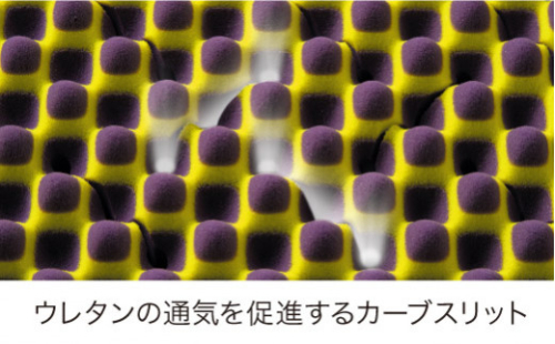 ■ウレタンのカーブスリットを施すことで、通気性がアップ。※製造工程及び原材料の特性上、開封当初はウレタン特有の臭いが発生する場合がございます。気になる時は、風通しのよいところにしばらく置いていただき、臭いを発散させてください。