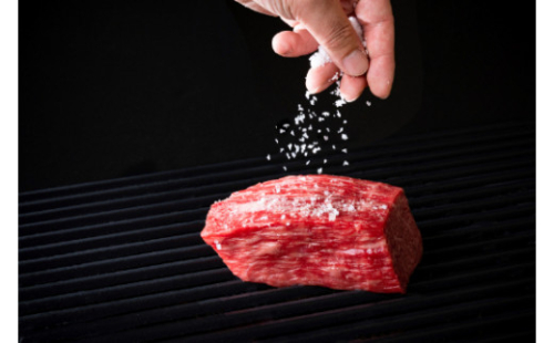 淡泊な赤身肉の旨味を引き出すために、必要な味付けは塩のみ。塩で味付けした後は、表面を直火で香ばしく焼き上げ、オーブンでじっくりと低温調理。肉の旨味をしっかり閉じ込めます。