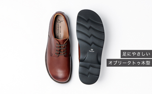 奈良県大和郡山製のヤマトイズム。Franという国産別注レザーはナチュラルな柔らかさ、仕上げ後の発色の良さがあります。軽くて弾力性のあるEVA素材のアウトソール、高反発のインソールで快適な履き心地を実現しています。つま先はオブリーク型で指先にストレスがかかりにくい形状です。アッパーとソールの間に施された茶色の飾りピースが良いアクセントになっています。