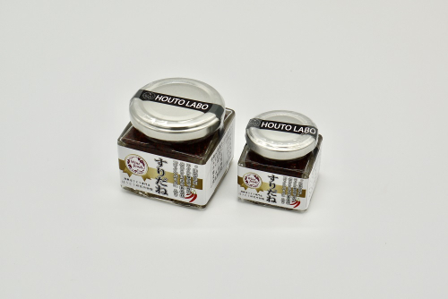 『すりだね』とは山梨東部で昔から食べ続けてられている辛味調味料のことです。 ワインパミスを『すりだね』に加えることによって、料理に辛みと風味の アクセントをつけるだけの調味料でなく、美容や健康にも良い栄養価をプラスしております。 ワインパミス入りと聞いて想像されるような独特の風味や雑味等は一切なく、『すりだね』だけを 直接口に含めば、微かにワインの香りを感じられる上品な『すりだね』に仕上がっております。