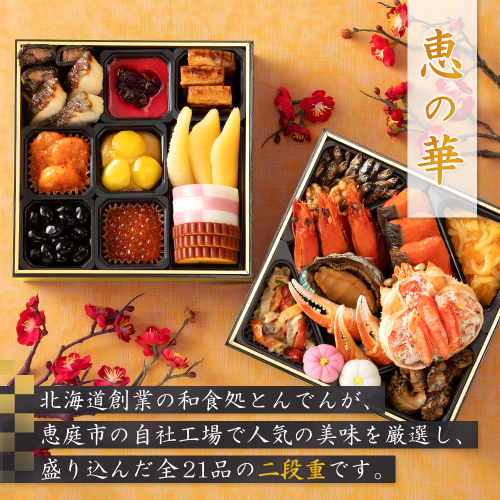【こだわりの二段重】おせち料理 恵の華 | ふるさと納税 北海道 恵庭 おせち こだわりの二段重 二段重 和風 洋風 豪華 おせち料理 重箱 盛付済のおせち お取り寄せ ワンストップ マイページ とんでん 恵庭市