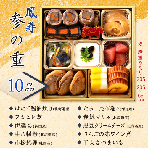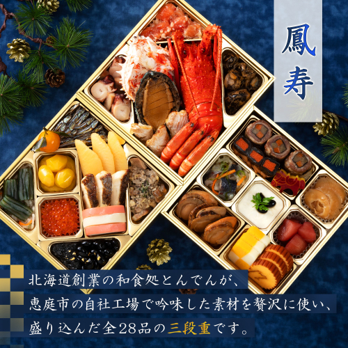 【ふるさと納税】【オール国産プレミアム三段重】おせち料理 鳳寿 | とんでん おせち料理 鳳寿 三段重 和風 洋風 豪華 重箱 盛付済のおせち お取り寄せグルメ お正月 冷蔵おせち 冷蔵 お取り寄せ 北海道 恵庭市 恵庭【44003602】