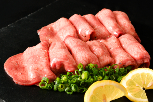 お店の看板商品の「気仙沼ホルモンほんちゃん(塩味)」でも使用している秘伝の特製塩だれを使った、『あっさり感でもコクが旨い』ねぎ塩味の牛タンです。