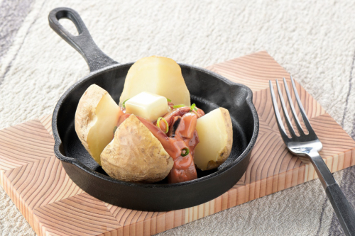 そのままご飯やお酒の肴として。また、蒸したジャガイモにのせても、簡単、美味しくお召し上がりいただけます。