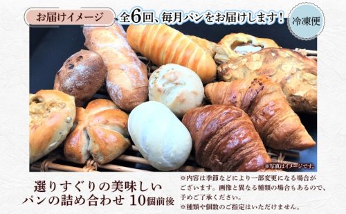 - 6ヶ月定期便 おまかせ 詰め合わせ パン 10個前後入り アソート 北海道産小麦 春よ恋 天然酵母 クロワッサン 朝食 冷凍配送 クール便 無料配送 神奈川県 逗子市 カフェ ラ・シャット・ロンロン