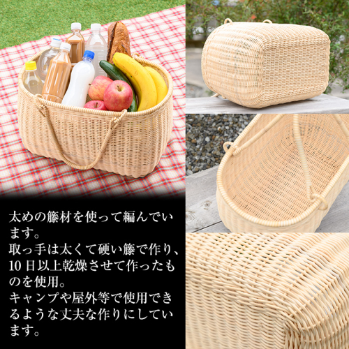 • H0-005 ピクニックバスケット(1個)【籠屋さん】霧島市 籠 かご カゴ バッグ バスケット 手提げ 籐 ハンドメイド 手作り 収納 インテリア
