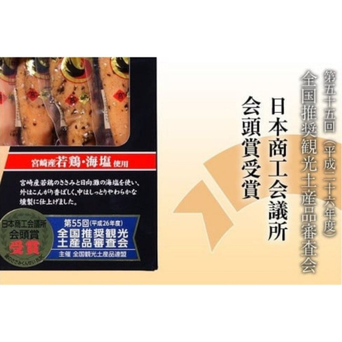昭和57年の創業以来、良質な原料にこだわり、美味しさを追求し続けてきた「鶏のささみくんせい」は、第55回(平成26年度)全国推奨観光土産品審査会」日本商工会議所会頭賞を受賞するなど、その美味しさが全国でも認められています。