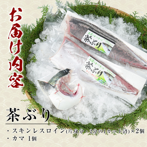 - ブリカマ付!茶ぶり スキンレスロイン(片身分・2分の1カット済) 鮮魚 下処理済み ぶり 柵 刺身 ブリ 切り身 鰤 ぶりかま 【ウスイ】usui-7319