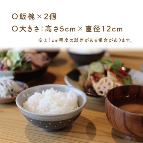 飯椀 2個(黒地白釉×黒地白釉)