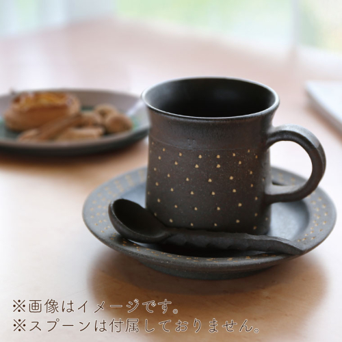 AS003-4 益子焼 ドット柄コーヒーカップ&ソーサー(黒地黒釉) 928959 - 栃木県益子町
