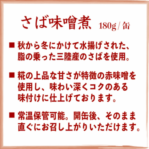 三陸産 さば味噌煮 180g×24缶【DHA・EPA・長期保存可能】 [気仙沼市物産振興協会 宮城県 気仙沼市 20565291] 缶詰 味噌煮 味噌煮缶 常備 長期保存