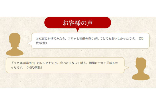 お刺身やおひたしに使っていただくと豊かな風味をお楽しみただけます。うどんやそうめんつゆなど和食にはもちろん、和風パスタなどいろいろな料理の隠し味として、幅広く活用していただけます。