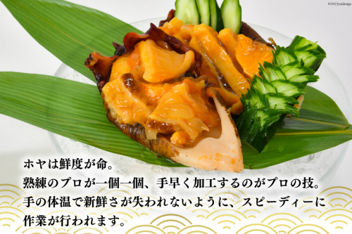 肉厚4年物の[ほや]のむき身を急速で超低温冷凍状態に。獲れたての鮮度を閉じ込めた状態で出荷します。