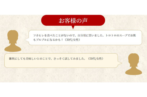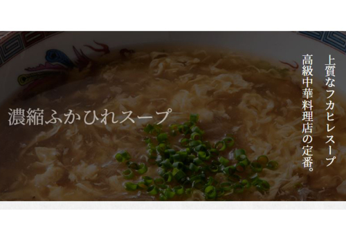 じんわり絶妙な旨みが広がるふかひれスープ。溶き卵を入れていただくと豊かな味わいに。ほかにもお好みの具材を入れるなど手軽にお楽しみいただけます。本格中華料理店のレシピ協力をいただいた上品な味わい。フカヒレ入りの贅沢なスープの素として、幅広く活用できる使い勝手の良さが人気です。3倍濃縮タイプです。