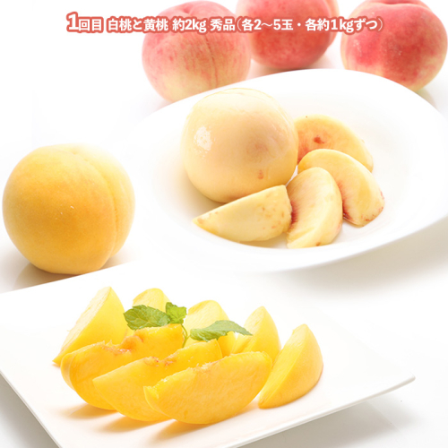 1回目:柔らかめの白桃と黄桃 約2kg 秀品 (各2~5玉・各約1kgずつ) (8月15日~9月15日) 冷蔵