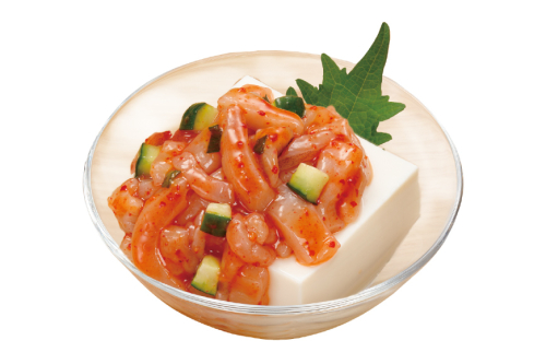 柔らかいイカを旨辛のキムチ味で味付けしました。