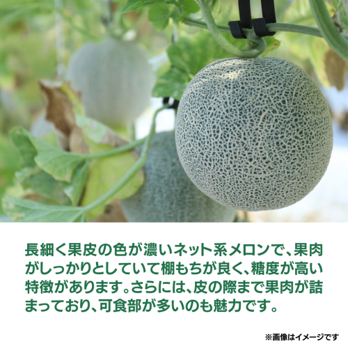 この品種は、長細く果皮の色が濃いネット系メロンで、果肉がしっかりとしていて棚もちが良く、糖度が高い特徴があります。さらには、皮の際まで果肉が詰まっており、可食部が多いのも魅力です。