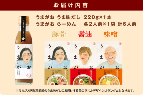 - うまがお らーめん3種&うま味だし1本セット ラーメン 拉麺 3種 セット 詰め合わせ 豚骨 醤油 味噌 半生麺 【145_2058】