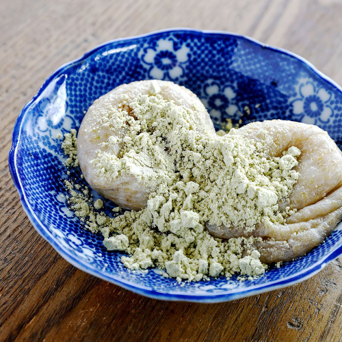 梅木もち屋では、香ばしく炒った青大豆をきな粉にしています。