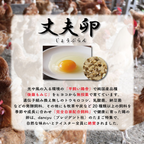 遺伝子組み換え無しのトウモロコシ、乳酸菌、納豆菌などの発酵飼料、その他にも牧草や炭など20種類以上の飼料を季節や成長に合わせ「完全自家配合飼料」で健康に育った鶏の卵は、dancyu(プレジデント社)のたまご特集で、自然な味わいとテイスター全員に絶賛されました。