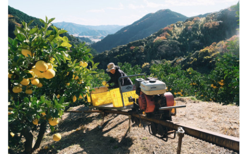 現在は3代目となり長年培ってきたノウハウとTAMURA KAJUENの文旦園は南国高知の太陽の光がたくさん当たる南向けの斜面、水はけの良い好条件の山で丹精込めて育てています。