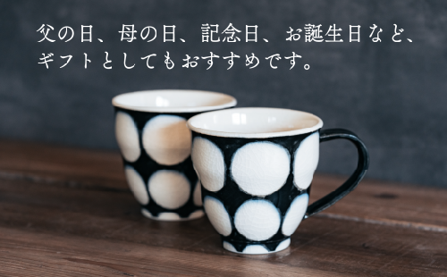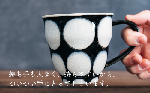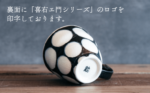 ■食卓もくつろぎ時間もかわいく彩るマグカップ 普段使いをするなら、たくさん入るカップが いいという人も多いのではないでしょうか?? 大容量タイプのマグカップだから、コーヒーも紅茶もお茶もたっぷり楽しめて、普段使いにぴったりです。 ぽってりした形に、喜右エ門シリーズの模様が映えてかわいらしくて、ついつい手に取って使ってしまいます。 ご自身の普段使い用はもちろん、ギフトとしてもおすすめです◎ ■和モダンの雰囲気がかわいい丸紋模様 手描きで描く大胆なデザインの丸紋模様が和モダンな雰囲気でかわいい。 呉須が渋みのある絵の具になっているので、かわいい絵柄だけど、 渋さが加わり、和の雰囲気を感じる器です。 ■暮らしに、手しごと感じる器を。 忙しない現代社会だからこそ、過ごしたい丁寧な日々。 家族と一緒に、友人と一緒に、大事な人と一緒に囲む食卓だから、 手しごと感じる器を並べて、何気ない時間を大切に過ごしませんか。 食器 カップ 贈答 窯元:喜鶴製陶 喜右エ門 提供:合同会社 喜鶴製陶