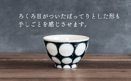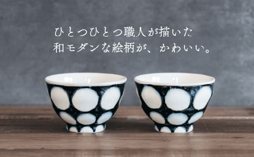 喜鶴製陶のお茶碗は、独自にブレンドした陶土と和の雰囲気を感じさせる手描きの絵柄に、ろくろ目のある器の形、それぞれが手しごとを感じさせます。
