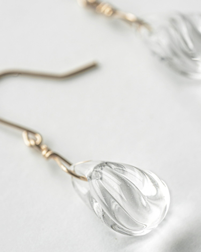 ガラスに入った筋模様のねじれが光を取り込み、耳元を明るく演出します。