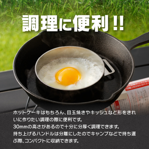 ホットケーキはもちろん、目玉焼きやキッシュなど形をきれいに作りたい調理の際に便利です。