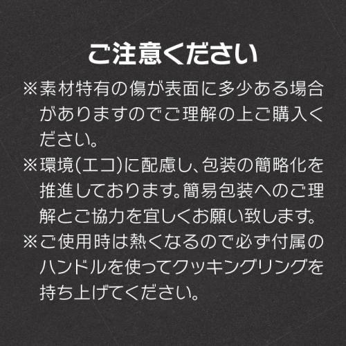*ご使用時は熱くなるので必ず付属のハンドルを使ってクッキングリングを持ち上げてください。