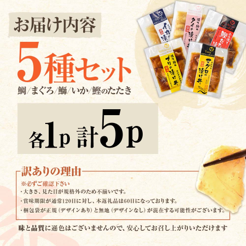 訳あり 海鮮漬け丼 (5種×各1P)計5P セット マグロ 鯛 イカ ブリ 鰹のたたき 海鮮丼セット 漬け丼 海鮮丼 漬け づけ丼 食べくらべ 漬け丼の素 海鮮丼の具 海鮮セット まぐろ いか ぶり 鯛 かつおのたたき 鰹タタキ 訳アリ 不揃い 規格外 わけあり 食べ比べ 海鮮 魚介類 水産加工品 冷凍 食品 保存食 鯛茶漬け 小分け 一人暮らし 簡単 高知 惣菜 7000円
