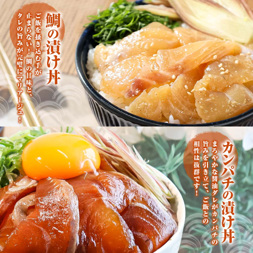 恵み多き土佐の海からの贈り物!! 5種の魚をそれぞれ高い鮮度のまま切り身にし、【特製タレ】に漬け込んで急速冷凍した一品です。 解凍し、炊き立てご飯にかけるだけで、地元でしか味わえない様な新鮮な特製タレ漬け丼がお召し上がり頂けます。 又、それぞれの魚種によってネギ・生姜・わさび等、お好みで合わせて頂ければより美味しくいただけます。 その他、解凍してそのままお酒のおつまみやとしても絶品です。お茶漬けにも! 【鰹タタキ漬け入り!】 漬け丼 漬け丼セット 海鮮 丼 お茶漬け 鰹のタタキ かつお サバ 鯛 カンパチ ブリ 送料無料 故郷納税 ふるさとのうぜい 返礼品 高知県 高知