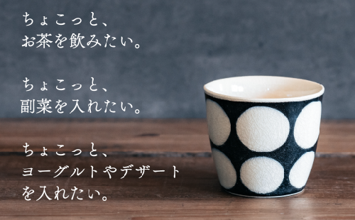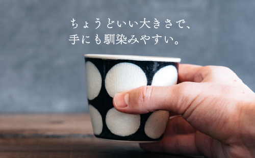 ■おうちに必ず持っておきたい!食卓で三刀流の活躍!! みなさまは、食卓に蕎麦ちょこはお持ちでしょうか。 本来はお蕎麦を入れる器として使用しますが、デザートカップや副菜を入れる小鉢としても、 お茶やコーヒーなど飲み物用のカップとしても、ちょうどいいサイズで大活躍してくれます。 某二刀流選手を上回る?三刀流の活躍です! 素材も風味のある独自の陶土を使用しているため、雰囲気の良いやさしい仕上がりになっています。 ■和モダンの雰囲気がかわいい丸紋模様 手描きで描く大胆なデザインの丸紋模様が和モダンな雰囲気でかわいい。 呉須が渋みのある絵の具になっているので、かわいい絵柄だけど渋さが加わり、和の雰囲気を感じる器です。 ■暮らしに、手しごと感じる器を。 忙しない現代社会だからこそ、過ごしたい丁寧な日々。 家族と一緒に、友人と一緒に、大事な人と一緒に囲む食卓だから、手しごと感じる器を並べて、何気ない時間を大切に過ごしませんか。 食器 カップ 贈答 窯元:喜鶴製陶 喜右エ門 提供:合同会社 喜鶴製陶