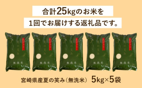 【学校給食提供】<令和7年産 宮崎県産夏の笑み(無洗米)25kg 5kg×5袋> お申込みの翌月末までに順次出荷 米 希少品種 チャック袋