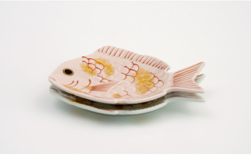 【人気の器!豆皿特集】 有田焼らしい赤絵と金彩で上品に彩りを加え、華やかな印象に仕上げたお皿です。 お正月やお食い初めなどのお祝いの席に最適のデザインです。 愛嬌があり、かしこまり過ぎないので普段使いにもオススメ。 ちょっとした和え物やお漬物、来客時の菓子皿としてなど、手のひらサイズの和食器は幅広い用途で大活躍。 立体感のある鱗の彫りや、裏面まで書き込まれた気遣いは、贈り物としても好適の一品です。 ※本体カラー「アイボリー」と「薄ピンク」のペア商品です。 ※トレイは撮影用の備品で付属品ではございません。 窯元:幸楽窯 提供:株式会社深海三龍堂