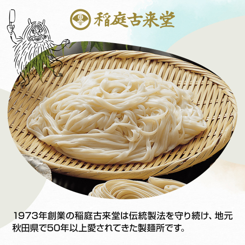 稲庭古来うどんは秋田県稲庭地区に300余年の古くから継承されている「手綯(てない)製法」を用いて、厳選された材料を使用し、稲庭古来堂・田沢湖工場の熟練職人が丁寧に仕上げたこだわりの逸品。ツルッとした喉ごしと程よいコシに定評があります。