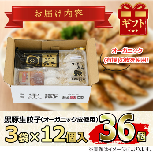 【0125107a】オーガニック皮使用!鹿児島黒豚生餃子セット(12個入×3パック・計36個)黒豚 豚肉 ぶた肉 餃子 ギョウザ ぎょうざ 惣菜【鹿児島ますや】