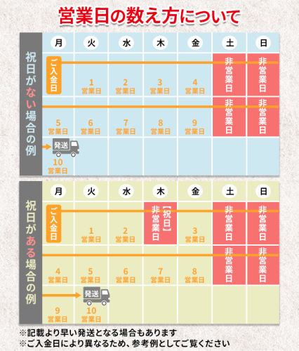 ※指定日はお受けできかねますが、不在日や受け取り不可期間がございましたら、必ず、注文番号とお名前を添えてご連絡ください。