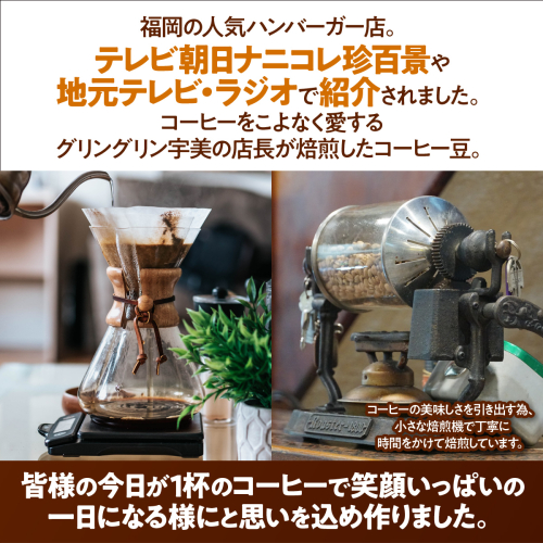 コーヒーをこよなく愛するグリングリン宇美の店長が焙煎したコーヒー豆。