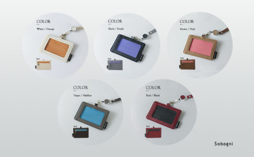 エシカルレザーSobagni IDカード ホルダー 雑貨 小物 長さ調整可 リール付き 取り外し可 コインスペース ファスナー YKK製 ユニセックス