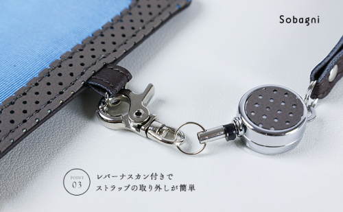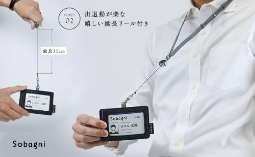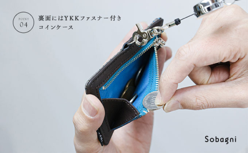 - エシカルレザーSobagni IDカード ホルダー 雑貨 小物 長さ調整可 リール付き 取り外し可 コインスペース ファスナー YKK製 ユニセックス