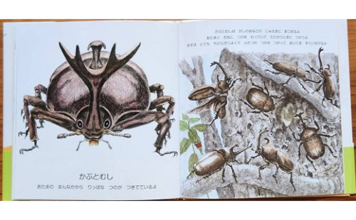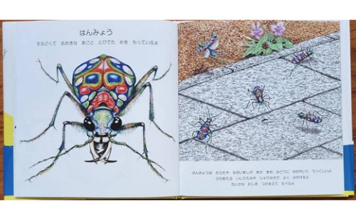 虫の顔の超アップ、虫の体全体、自然界にいる虫の姿という構成で精緻な描写とリズミカルな文章が魅力です。