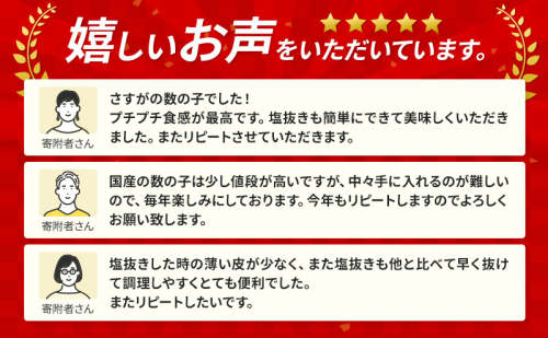 昔ながらの『最高級塩数の子』、国産の数の子特有の風味をお楽しみください。