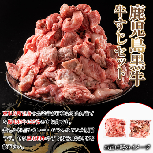 数量限定!鹿児島県産の牛肉で普段のお料理を贅沢に! 東串良町出身の生産者が丁寧に丹念に育てた黒毛和牛100%のすじ肉です。 煮込み料理やカレー・おでんなどに大活躍です。 ぜひ黒毛和牛のすじ肉を贅沢にご堪能下さい。 【注意事項】 ※副産物のため、まれに規格外で色が変わっている肉もございますが、品質には全く問題ございませんので安心してお召し上がりください。 ※指定日はお受けできかねますが、不在日や受け取り不可期間がございましたら、必ず、注文番号とお名前を添えてご連絡ください。 地場産品理由:区域内で肥育したものをJAを通して肉を出荷しているが、近隣の複数団体を管轄する畜場でと畜するため、流通の構造上、近隣の肝付町や鹿屋市で肥育された牛肉と混在する