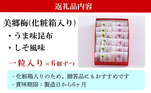 南高梅 梅干し 美郷梅 一粒入り うま味昆布 & シソ風味 各6粒 3Lサイズ A級品 化粧箱入り [農林産物直売所 美郷ノ蔵 宮崎県 美郷町 31ab0101] 国産 セット 詰め合わせ 宮崎県産 美郷産 常温 送料無料 贈答品 父の日 母の日 プレゼント ギフト