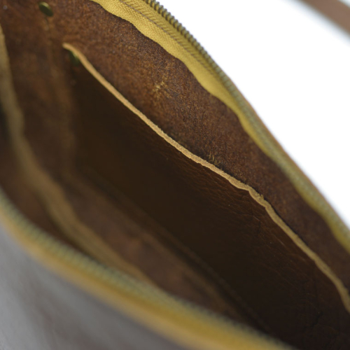 横長タイプのサイズで、長財布や文庫本、スマートホンが充分入ります。内外ポケット付き。