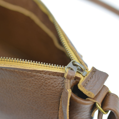 バックのファスナー部分は、バックの横幅とほぼ同じ長さになっているので口開きがよく、中のものが取り出しやすくなっています。