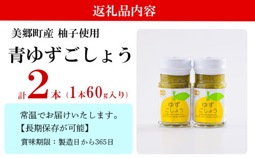 調味料 青ゆずごしょう 60g×2本 セット [農林産物直売所 美郷ノ蔵 宮崎県 美郷町 31ab0104] 青唐辛子 柚子 ゆず 塩 唐辛子 柚子胡椒 ギフト 調味料 宮崎県産 産 国産 送料無料 薬味 地鶏 刺身 焼き鳥 うどん そば そうめん 水炊き 鍋料理 肉料理 魚料理 手作り 手づくり 料理 調理 おかず