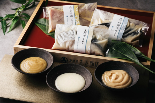 【説明】焼津で古くから保存食として親しまれてきた漬け魚。焼津港 丸入商店では、焼津の魚文化、そして糀文化に寄り添い、「生糀漬」「あいじろ漬 」「熟成粕漬」の 、三つの漬け床で丁寧に漬けています。