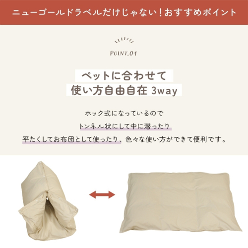 ふわふわのおふとんに包まれたペットと、ほっこり癒しの時間をお過ごしください。